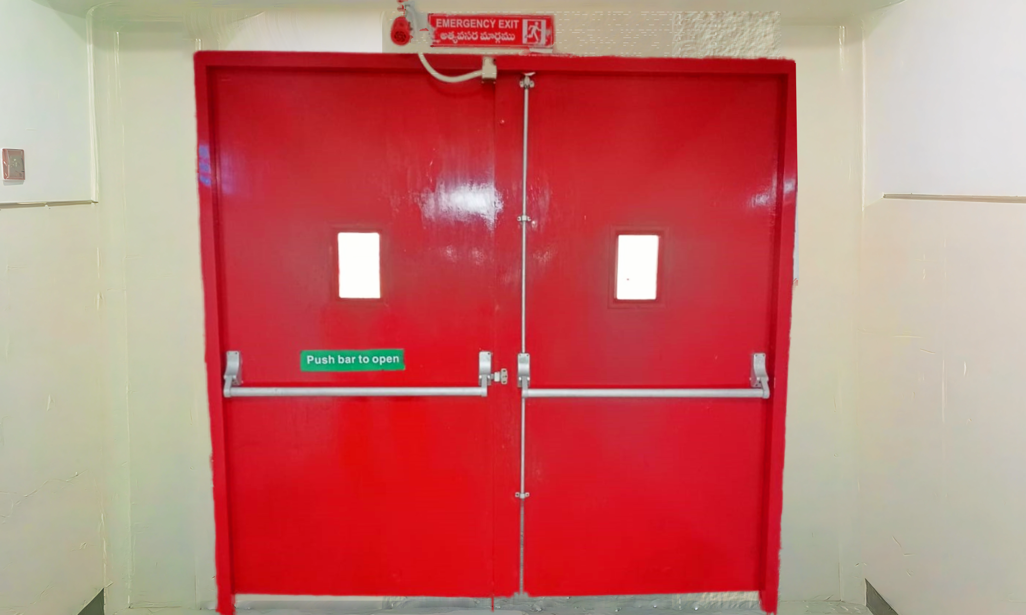Emergency Doors, also known as Fire Doors, are specially designed for safety and emergency evacuation in critical environments such as hospitals, laboratories, and clean rooms. These doors ensure quick and secure exit during emergencies like fire, smoke, or chemical leaks, while maintaining the integrity and hygiene of the premises during normal operation.