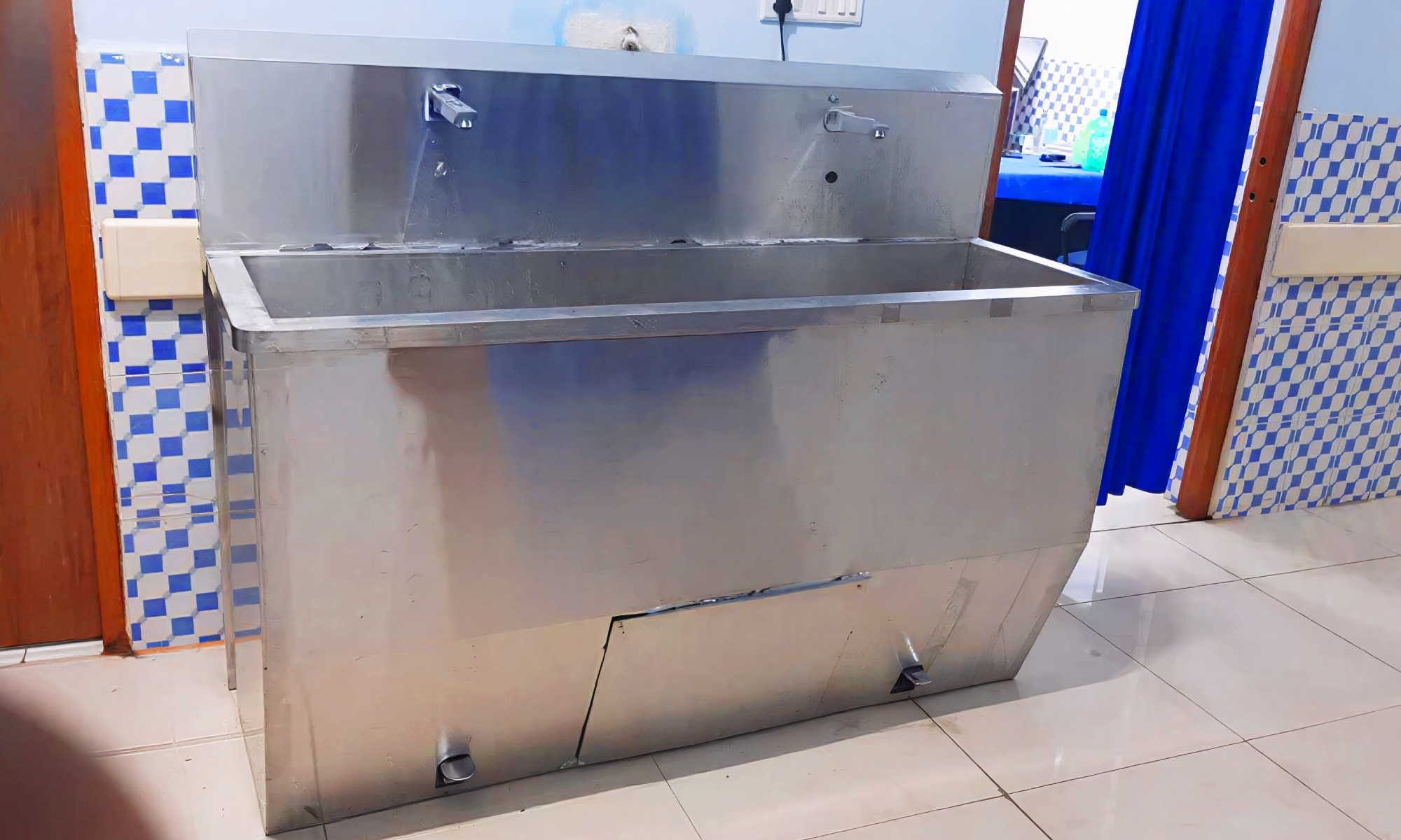 The Surgical Scrub Sink Station is designed to provide safe, hygienic, and hands-free pre-surgical scrubbing for surgeons and medical staff inside Operation Theatres, ICUs, and Clean Rooms.. Fabricated from high-grade Stainless Steel 304 (18 gauge / 1.2mm thick), the unit ensures corrosion resistance, seamless finish, and easy maintenance, meeting hospital hygiene and infection control standards.